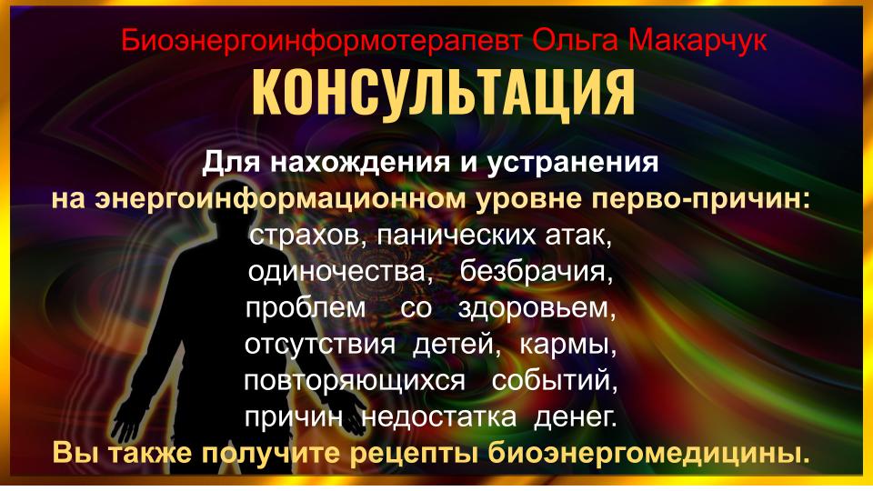 Консультацию ведет биоэнергоинформотерапевт Ольга Макарчук.