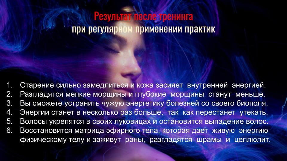На практическом тренинге мы работаем через матрицу эфирного тела-двойника. Световое омоложение. Энергетическое омоложение.