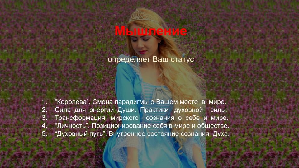 Я готова передать эти знания людям, ведь, собственно, это и есть моя работа для людей, можно сказать, предназначение: передавать эксклюзивные знания, которые мне дали духовные учителя с тонкого плана, они даже назвали мне свои имена.