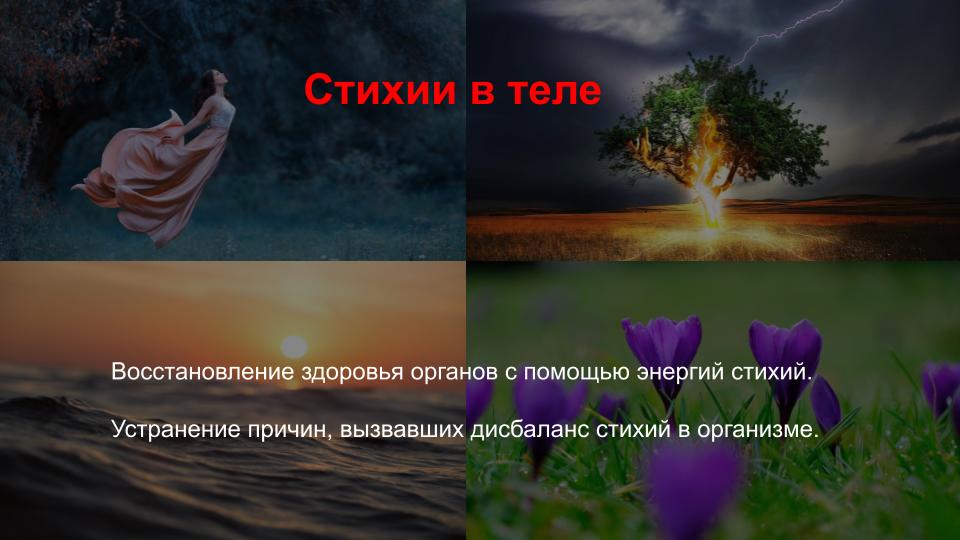 А почему возникает избыток или недостаток стихии в теле? На тренинге мы устраним нарушения в нашем теле, в энергетических каналах, которые вызваны стихиями.