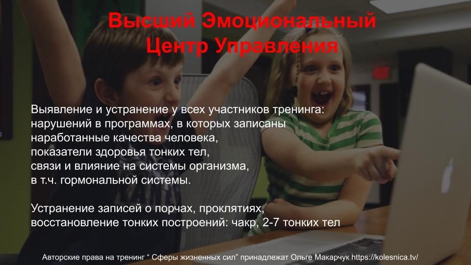 На тренинге мы будем восстанавливать нарушенные программы функционирования одного из наших биокомпьютеров, Высшего эмоционального центра управления, который управляет нашими эмоциями, а также влияет через эмоции на работу органов и систем, других внутренних систем управления.