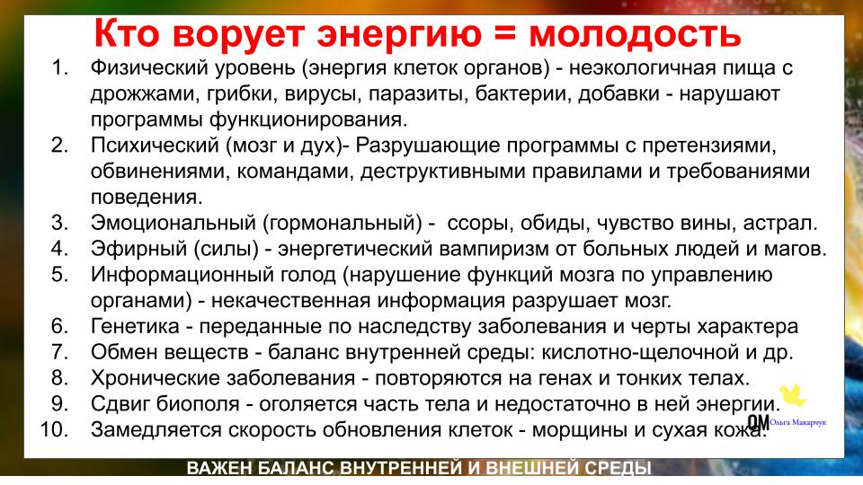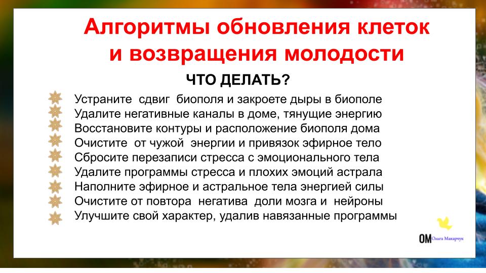 1. Устраните на энергоинформационном плане причины разрушения клеток.