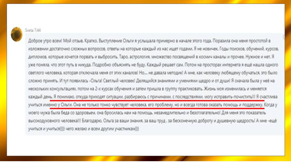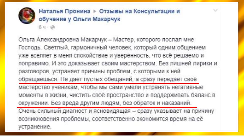 Вы сможете в прямом эфире получить поддержку мастера Ольги Макарчук при тестировании и устранении причин возникновения болезней, проблем в жизни. Ведь всегда есть причина любой проблемы и болезни - надо только найти ее и устранить на энергоинформационном плане. Тогда на физическом плане проявится здоровая жизнь, свободная от проблем, вы сможете насладиться всеми красками великолепных энергий жизни и проживете более долгую и счастливую жизнь.