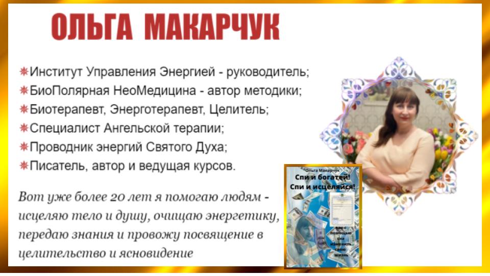 Книга Ольги Макарчук "Спи и богатей. Спи и исцеляйся". Нажмите на картинку.