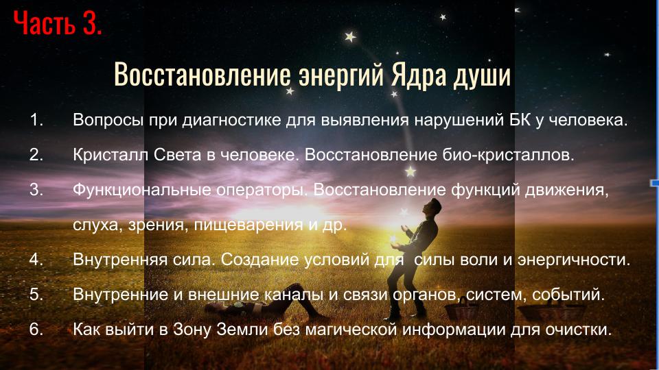 Мы с Вами также проведем восстановление по норме многих программ в тонких телах, которые управляют жизнедеятельностью человека.