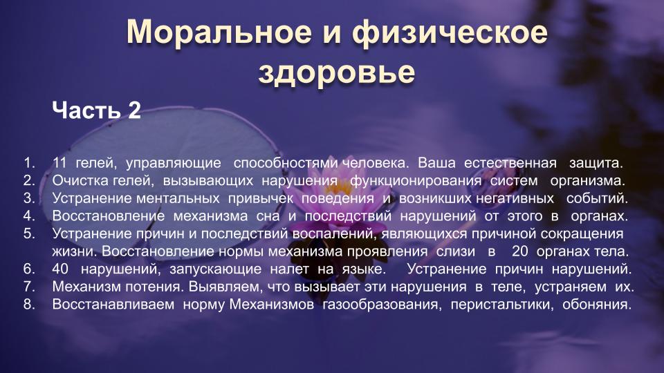 От электромагнитной, информационной грязи необходимо очищаться более тщательно, чтобы чувствовать приятный вкус жизни в радости, духовном подъеме, счастливо передавать радость близким. От нашего здоровья очень зависит качество жизни близких и любимых, мы в здоровом сотоянии готовы горы свернуть, чтобы всем помочь.