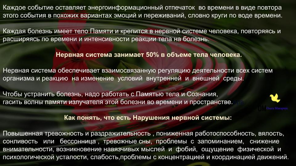 Благодаря Памяти в нервной системе Вы можете настроить свой мозг в когерентное состояние, чтобы войти своим Сознанием в Сознание Вселенной и передать Вселенной свою просьбу о материализации желаемых событий в Вашей жизни, об исцелении.